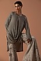 Featuring a grey cowl jacket in georgette, jersey and tulle base with metallic sequins and cutdana embroidery. It is paired with trousers. Accentuate it with sleek metallic heels and minimal statement earrings to balance the bold sequins, for a stylish ensemble ideal for cocktail parties or high-fashion soirees.