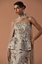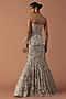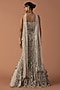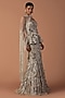Featuring a grey fish tail lehenga in jersey and tulle base with 3D floral and cutdana embroidery. It is paired with a peplum and a dupatta. Elevate this designer ensemble with diamond jewellery and embellished block heels for a striking look, perfect for cocktail nights, reception or engagement ceremonies.