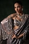 Featuring a grey pant in organza base with sequins embroidery. It is paired with an embroidered blouse, an aanchal, a dupatta. Accentuate it with statement jewellery and heels for a wedding, sangeet for engagement ceremony.