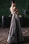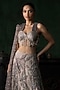 Featuring a grey lehenga in tulle and tissue base with applique embroidery. It is paired with a hand embroidered corset blouse and a dupatta. Accentuate it with statement jewellery and heels for a wedding, sangeet for engagement ceremony.
