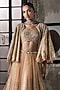 "Featuring a light peach lehenga in tulle base with embroidery. It is paired with an embroidered blouse and a cape. Accentuate it with statement jewellery and heels for a wedding, sangeet for engagement ceremony.