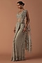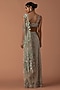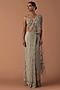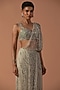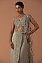 Featuring a mint pre-stitched saree in tulle base with 3D floral embroidery. It is paired with a blouse having threadwork. Accentuate it with statement earrings, sleek heels and a soft, low bun or textured waves for a polished ensemble, ideal for cocktail soirees, resort weddings or elegant evening celebrations