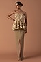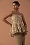 Featuring a peach peplum top in georgette and tulle base with feather and swarovski embellishment. It is paired with a slit skirt. Accentuate it with sleek metallic heels and minimal statement earrings to balance the bold sequins, for a stylish ensemble ideal for cocktail parties or high-fashion soirees.