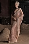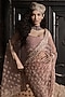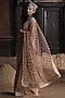 Featuring a peach pre-stitched saree in tulle base with crystal embellishments. It is paired with an embellished blouse. Accentuate it with statement jewellery and heels for a wedding, sangeet for engagement ceremony.
