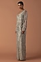 Featuring a powder blue kaftan gown in jersey and tulle base with 3D floral and cutdana embroidery. It is paired with a slip dress. Accentuate it with sleek metallic heels and minimal crystal or diamond jewellery for a refined finish, perfect for cocktail parties, evening galas, red-carpet events, or high-fashion soirees.