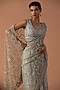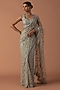 Featuring a powder blue pre-stitched saree in tulle base. It is paired with a blouse having zardosi embroidery. Accentuate it with statement earrings, sleek heels and a soft, low bun or textured waves for a polished ensemble, ideal for cocktail soirees, resort weddings or elegant evening celebrations