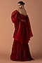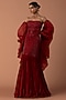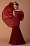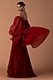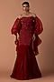 Featuring a red corset in georgette and tulle base with beads and cutdana embroidery. It is paired with a fishtail skirt and an organza bouffant draped sleeves.Accentuate it with sleek metallic heels and minimal crystal or diamond jewellery for a refined finish, perfect for cocktail parties, evening galas, red-carpet events, or high-fashion soirees.