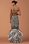 Featuring a silver dress in jersey, tulle and metallic leather base with swarovski stone and leather tassel embroidery. It is paired with a skirt. Accentuate it with sleek metallic heels and minimal crystal or diamond jewellery for a refined finish, perfect for cocktail parties, evening galas, red-carpet events, or high-fashion soirees.