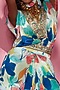Featuring a blue v-neck top in silk crepe base with floral details. This contains one piece only.