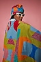 Featuring a multi-colored cape dress in crepe base.