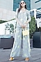 Featuring a white structured top in crepe base with print. It is paired with matching pants having an attached belt.