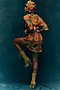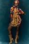 Featuring a yellow and orange knotted half n half shirt dress in viscose crepe base with print.