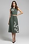 Featuring an olive sleeveless top in stretch denim base with a round neckline and metal zipper, including print and floral patch embroidery. It is paired with an A-line midi skirt. Style it with statement earrings and block heels for evening soirees, office meetings or formal events.