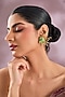 Featuring a pair of gold finish statement earrings studded with green stones, set in brass alloy. Add a touch of sparkle to your ensemble, perfect for festive occasions, evening soirees or cocktail parties.
