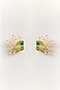 Gold Finish Green Stone Statement Earrings