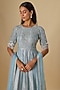 Featuring a blue anarkali in crushed tissue silk base with glass beads and sequins hand embroidery. It is paired with a net dupatta. Accentuate it with statement chandbalis and embellished heels for an elegant royal look, perfect for weddings, festive celebrations and traditional evening events.