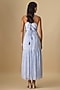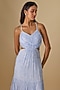 Featuring a blue maxi tiered dress in viscose chiffon base with floral print, side cut-outs, glass-stone tassels and hand-braided straps detail. Accentuate it with delicate jewellery and strappy heels for a chic modern vibe, perfect for cocktail parties or evening outings.
