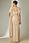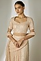 Featuring an ivory pre-stitched sequins saree in net base. It is paired with a blouse. Accentuate it with statement jewellery, block heels and a potli bag for festive occasions, sangeet or wedding ceremony.