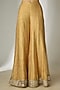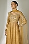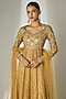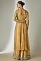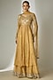 Featuring a gold anarkali in crushed silk tissue base with glass beads, acrylic and mirror hand embroidery. It is paired with a sharara and a net dupatta. Accentuate it with jewellery, embellished heels and a potli bag for a wedding ceremony or festive occasions.
