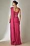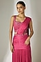 This set features a pre-draped pink saree paired with a sleeveless sweetheart blouse heavily hand-embroidered with pink glass beads and sequins. A stunner for the cocktail nights!