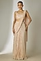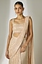 Featuring an ivory pre-stitched sequins saree in net base. It is paired with a sleeveless blouse. Accentuate it with statement jewellery, block heels and a potli bag for festive occasions, sangeet or wedding ceremony.
