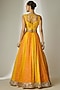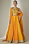 Yellow & Orange Viscose Organza Mirror Embellished Lehenga Set