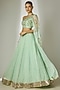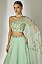 Mint Green Viscose Organza Mirror Embellished Lehenga Set