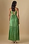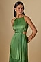 Featuring an olive green maxi tiered dress in bemberg chiffon satin base with a halter-neckline, side-cut outs and hand-pleated yoke. Accentuate it with delicate jewellery and strappy heels for a chic modern vibe, perfect for cocktail parties or evening outings.