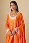 Featuring an orange kurta in silk chanderi base with bell sleeves, pearls, glass beads and sequins hand embroidery, including scalloped detail. It is paired with narrow pants and an organza hand embroidered dupatta. Accentuate it with kundan earrings and embellished juttis for a graceful charm, perfect for festive gatherings, daytime weddings and cultural celebrations.