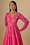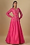 Featuring a pink anarkali in viscose organza base with glass beads, floral and sequins hand embroidery. Accentuate it with statement chandbalis and embellished heels for an elegant royal look, perfect for weddings, festive celebrations and traditional evening events.