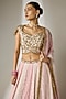 Featuring a pink lehenga in viscose organza base with an attached cancan, bukram, sequins jaal pattern and mirror embellishment. It is paired with a sweetheart neckline blouse having attached cups and an ombre pink dupatta. Accentuate it with statement earrings and heels for weddings or sangeet ceremonies.