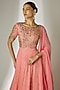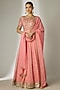 Peach Viscose Organza Hand Embroidered Anarkali Set