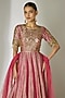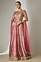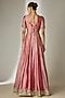 Featuring a pink kalidar anarkali in crushed silk tissue base with sequins and glass bead hand embroidery. It is paired with a net dupatta and a cancan skirt. Accentuate it with statement jewellery, block heels and a potli bag for festive occasions, sangeet or wedding ceremony.