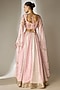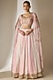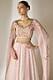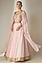 Featuring a pink lehenga in viscose organza base with an attached cancan, bukram, sequins jaal pattern and mirror embellishment. It is paired with a sweetheart neckline blouse having cape sleeves and attached cups. Accentuate it with statement earrings and heels for weddings or sangeet ceremonies.
