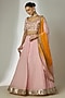 Pink Viscose Organza Mirror Embellished Lehenga Set