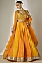 Yellow & Orange Viscose Organza Mirror Embellished Lehenga Set