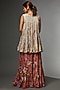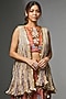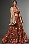 Featuring an orange flared lehenga in tulle and habutai base with embellishments. It is paired with a top having metallic and floral organza appliqued, including a multi-colored jacket having coin detailing. Style it with statement jewellery and heels for a sangeet or wedding ceremony.