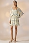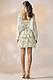 Featuring a beige mini dress in satin georgette base with floral print, ruffles and a v-neckline. Style it with hoop earrings and block heels for brunches, sundowner or garden parties.