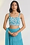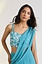 Featuring a blue pre-draped ruffled saree in georgette base. It is paired with a hand-embroidered blouse. Accentuate it with dangler earrings and heels for a wedding, sangeet or engagement ceremony.