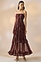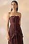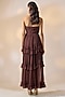Brown Georgette Pleated Off-Shoulder Dress