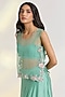 Featuring a green top in organza and georgette satin base with floral embroidery. It is paired with a bustier and a skirt. Accentuate it with statement jewellery and heels for an evening look.