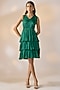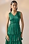 Green Satin Georgette Ruffled Tiered Dress