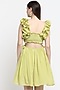 Featuring a mehendi green draped dress in georgette base with smocking. This contains only one piece.