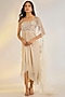 Featuring a nude pink corset gown saree in georgette satin base with zari, bugle bead and glass beads hand embroidery. Accentuate it with statement earrings and heels for a party or cocktail wear.