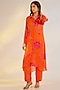 Featuring an orange top in georgette satin base with digital print and hand embroidery. It is paired with trousers. Accentuate it with statement earrings and heels for casual wear or family gathering.