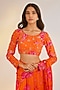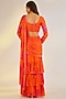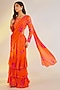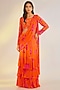 Featuring an orange ruffled pre-draped saree in georgette satin base with digital print. It is paired with a hand embroidered blouse. Accentuate it with statement earrings and heels for a wedding and festive occasions.