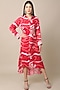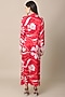 Featuring a red high-low shirt dress in crepe base with floral print and pearl embroidery.