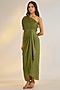 Sage Green Georgette Satin Hand Embroidered Draped Dress