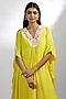 Featuring a yellow kaftan kurta in crepe and satin base with anchor embroidery. It is paired with abstract printed trousers. Accentuate it with statement earrings and heels for a festive look.