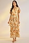Featuring a yellow dress in georgette base with floral digital print and ruched detail. Accentuate it with statement earrings and heels for a party or cocktail wear.